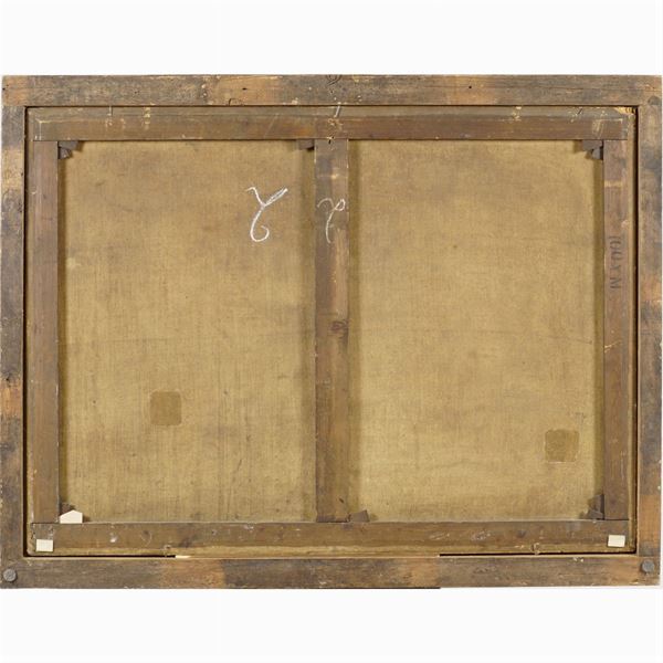 "Veduta della campagna laziale con figure", olio su tela, entro cornice, 96x130 cm.