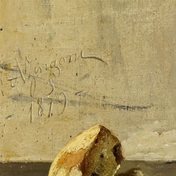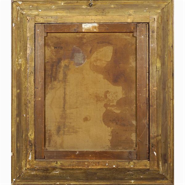 "Lo spazzacamino", olio su tela, firmato e datato 1879 a sinistra, entro cornice in legno dorato, 83,6x68 cm.