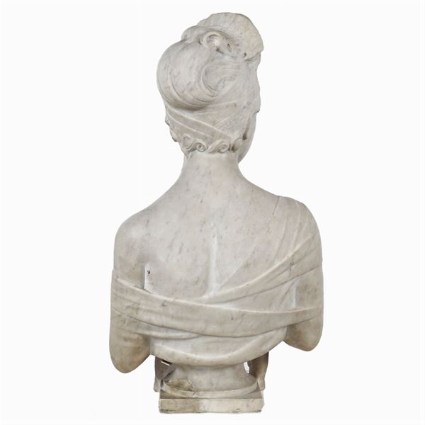 raffigurante una figura femminile, poggiante su base di forma quadrata, usure, h. 62 cm.