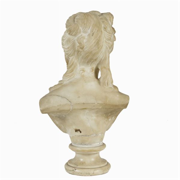 raffigurante figura femminile su basamento circolare, usure, mancanze e restauri, h. 56 cm.