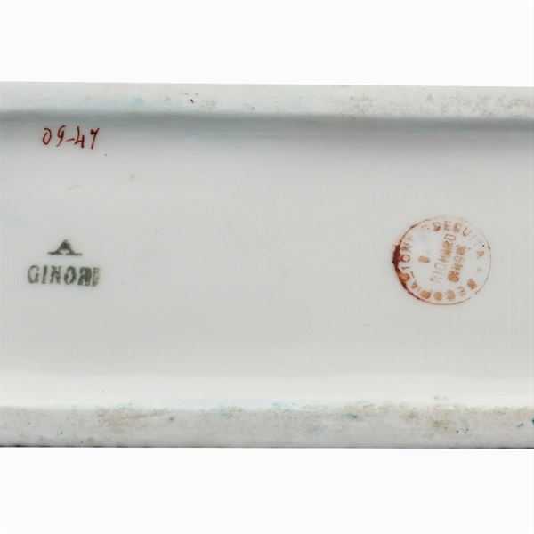 composto da sette elementi decorati in policromia con motivi floreali e dorati, marchio sotto le basi, 5,5x17,5x16 cm.