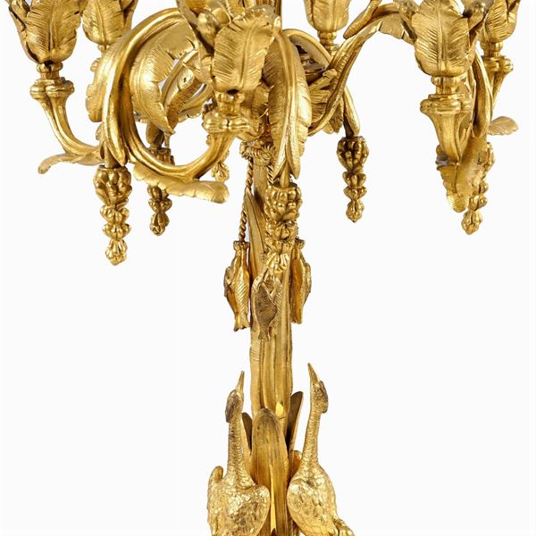 Coppia di candelabri in bronzo dorato a 6 luci