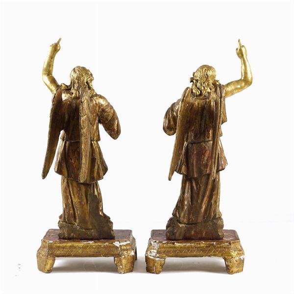 Coppia di sculture in legno dorato ed intagliato
