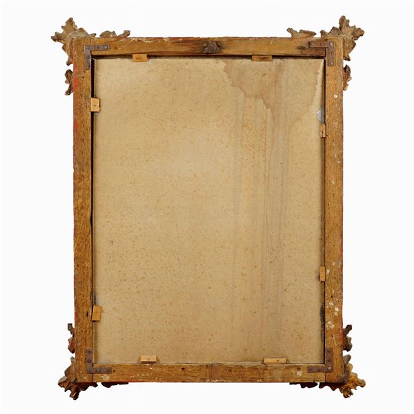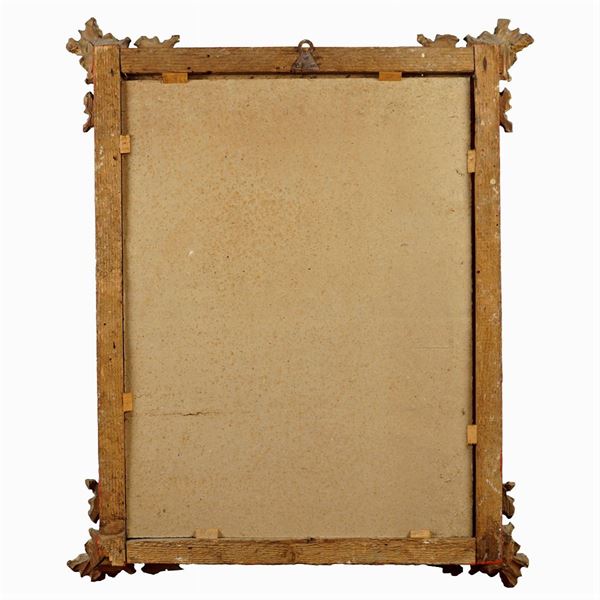 cornici rettangolari decorate con elementi in legno dorato a mecca ed intagliate con motivi vegetali, difetti, 98x79 cm.