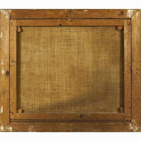 "Il tributo", olio su tela, entro cornice in legno dorato, 72x86.5 cm.