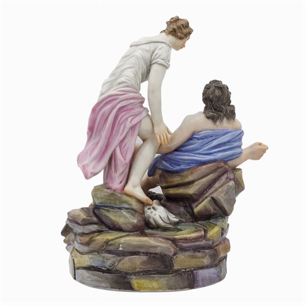 raffigurante Meleagro e Atalanta con testa di cinghiale poggiante su base rocciosa, h. 22 cm.