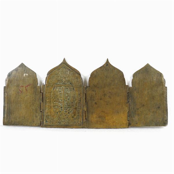 in bronzo e smalto, usure, aperta 15x35 cm. - chiusa 15x9,5 cm.