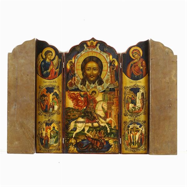 raffigurante "San Giorgio, gli Evangelisti e le dodici feste", tempera su tavola, 58x110 cm.