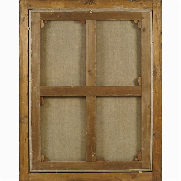 "Natura morta di fiori", olio su tela, entro cornice in legno laccato e dorato, 136x99 cm.