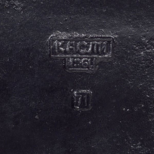 raffigurante "Cavallo", poggiante su base rettangolare, marchio e data sul fondo, 39x36x20 cm.