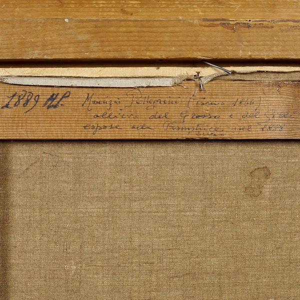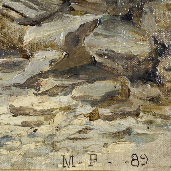 "Paesaggio della Val Pellice", olio su tela, siglato M.P. '89 in basso a destra e sul retro, entro cornice, 47x35 cm.