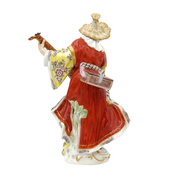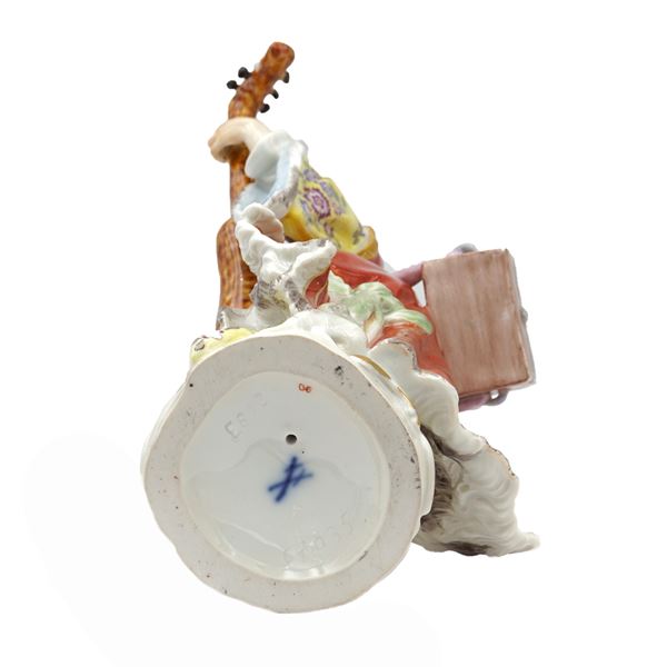 raffigurante un malabar con mandolino, base a roccailles, modello n. 67035, marchio sotto la base, h. 18,5 cm.