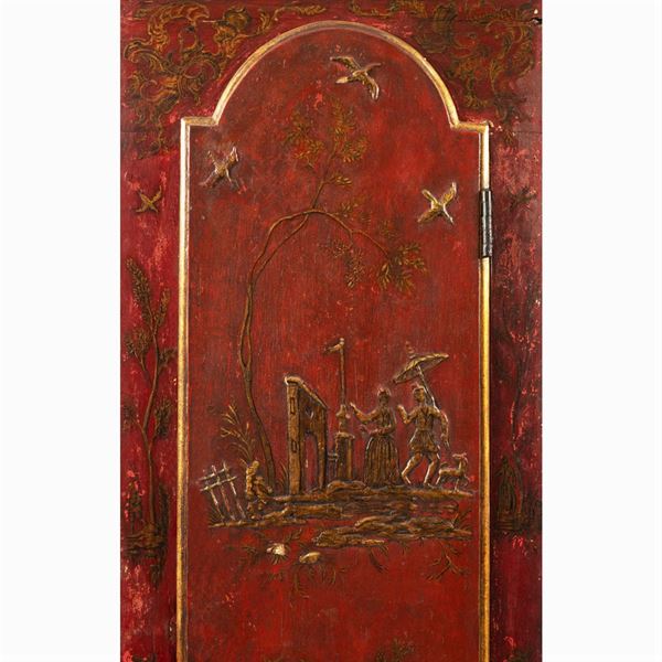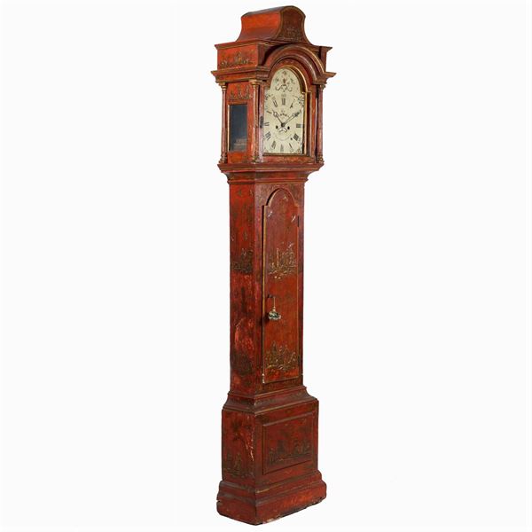 decorato in oro con scene di genere, quadrante, con numeri romani e arabi, firmato IN. Parr. Roget. Glasgow, lievi difetti, 245x54x30 cm.