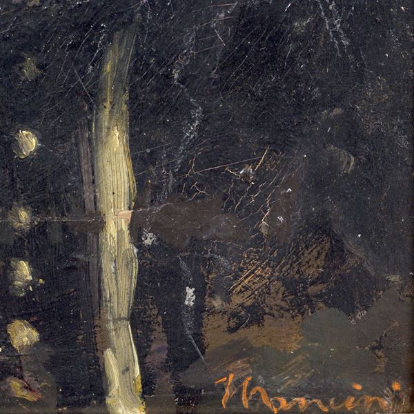 "Ritratti", coppia di oli su cartone, firmati Mancini in basso a destra, entro cornice, 40x28 cm.