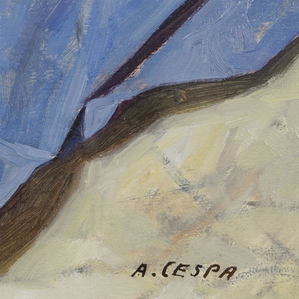 "Natura morta con volatili", olio su tavola, firmato "A. Cespa" in basso a destra, entro cornice, 44,5x38 cm.