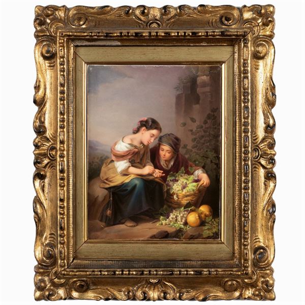 Placca in porcellana dipinta in policromia