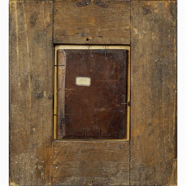 "Madonna con Bambino", olio su tavola, entro cornice dipinta, 25x20 cm.