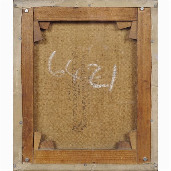 "Donna con brocca", olio su tela, entro cornice, 30x25 cm.