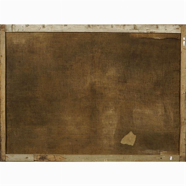 "Crocifissione", olio su tela, entro cornice in legno dorato, 135x98 cm.