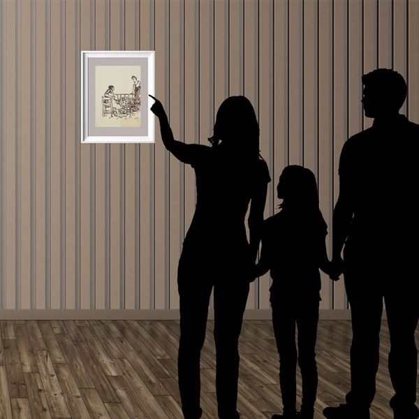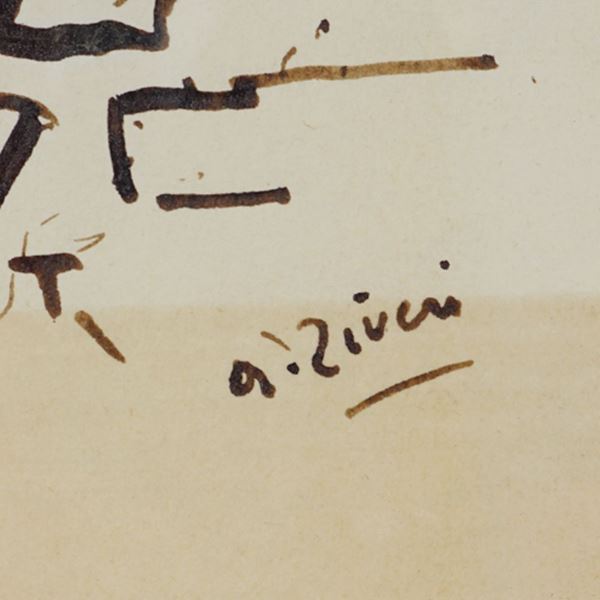 "La discussione", 1964, inchiostro su carta, firmato in basso a destra, entro cornice, 32x24 cm.