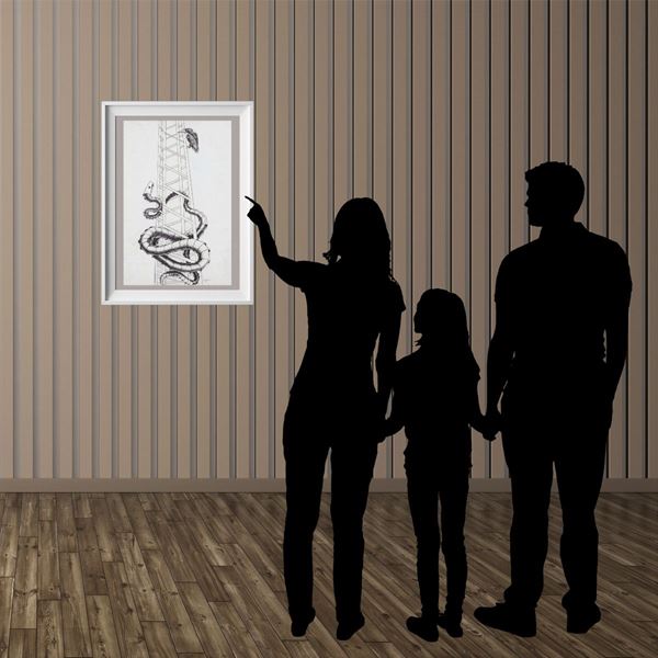 "La caccia", 1971, china su cartoncino, firmata e datata in basso a destra, entro cornice, 65x45 cm.