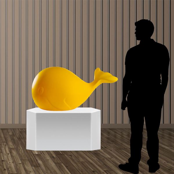 "The rainbow whale", L 120 colore giallo edizione Italia ( I ) es. 1/99, scultura in plastica, firmata, numerata e titolata sotto la base.