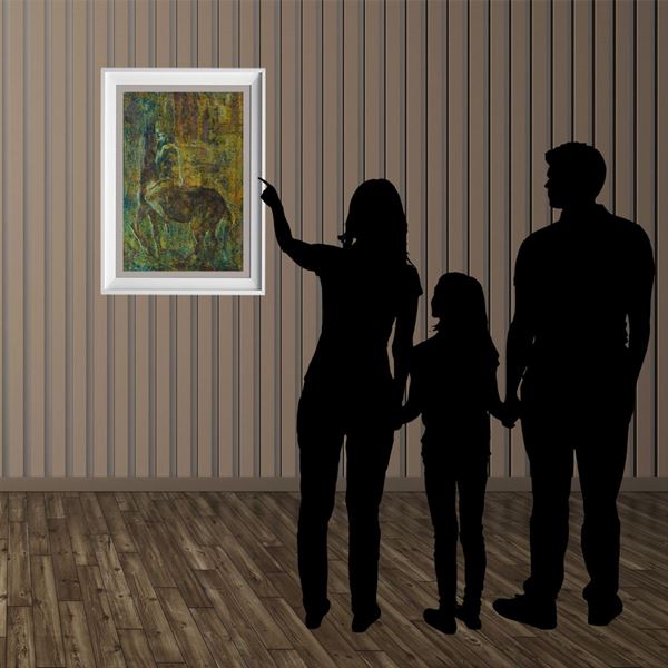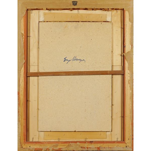 "Senza titolo", olio su tavola, firmato in basso a sinistra e sul retro, entro cornice, 60x40 cm.