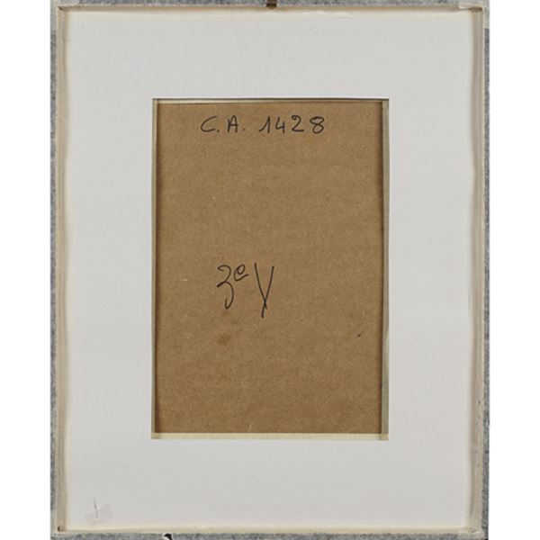 "Senza titolo", tecnica mista su tavola, firmata in basso a destra, entro cornice. Autentica su fotografia dell'Archivio Giorgio Chiesi n. C.A. 1428, 40x30 cm.