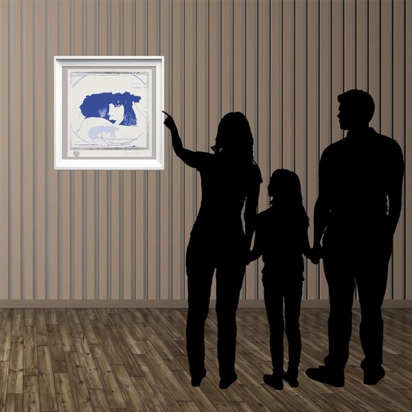 "Doppio Liberty - Blue e Azzurro", serigrafia es. n. 73/100, firmata in basso a destra, timbrata in basso a sinistra, entro cornice.