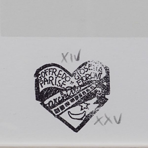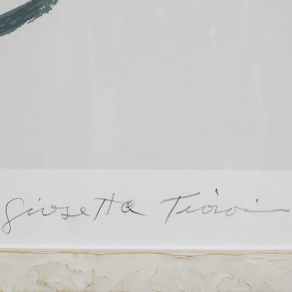 "Senza titolo", serigrafia polimaterica e carborundum a 12 colori es. n. XIV/XXV, firmata in basso a destra, timbrata in basso a sinistra, entro cornice. Autentica a cura dell'archivio Parise Fioroni., 70x100 cm.