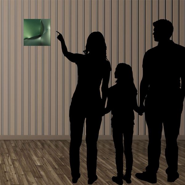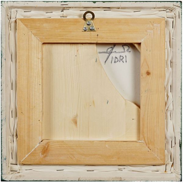 "IDRI - Verde", acrilico su tela estroflessa, firmato e titolato sul retro, autentica dell'artista su fotografia, 30x30 cm.