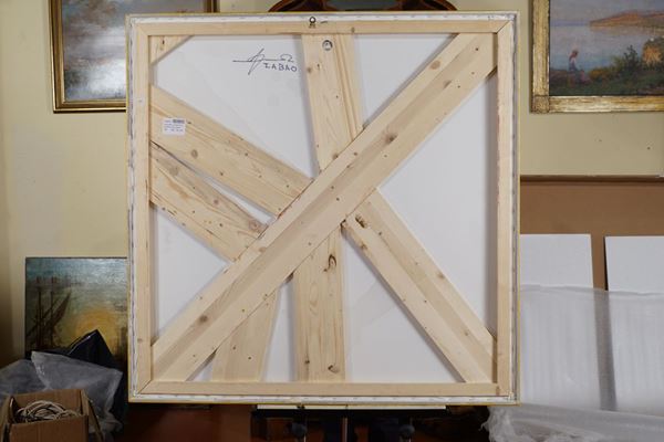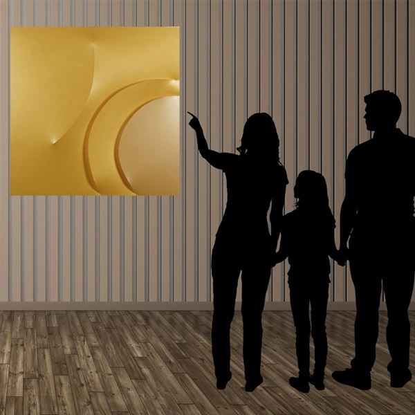 "IABAO- Giallo", tela estroflessa, firmata ed intitolata sul retro, autentica dell'artista su fotografia, 120x120 cm.