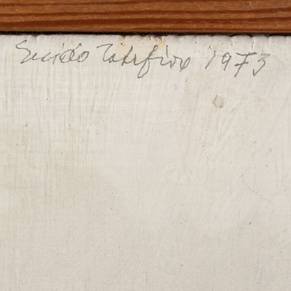 "Senza titolo", 1975, tecnica mista su tavola, firmata e datata in alto al centro, entro cornice, 60x36 cm.
