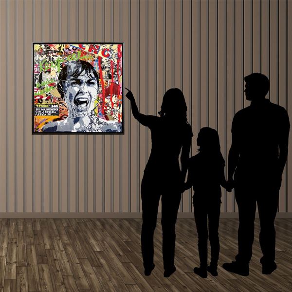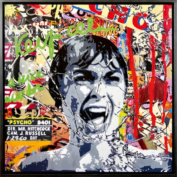 "Psycho", 2019, acrilico su tela, firmato sul retro, entro cornice, autentica dell'artista su fotografia, 80x80 cm.