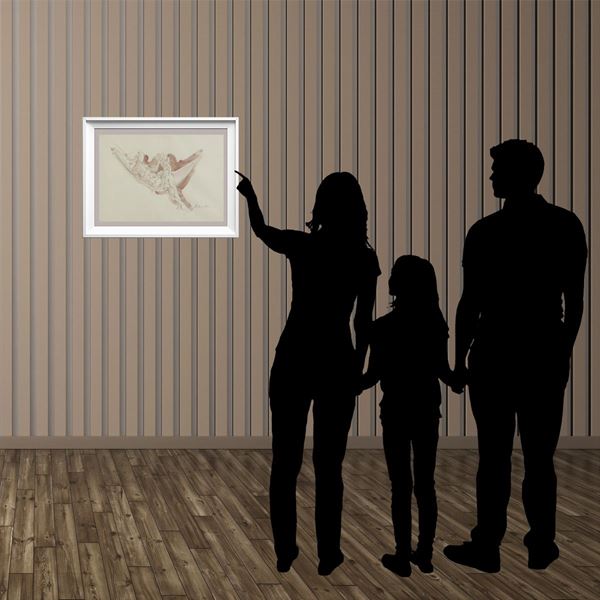 "Studio per amaca", acquarello su carta, firmato in basso a destra, entro cornice, 35x50 cm.