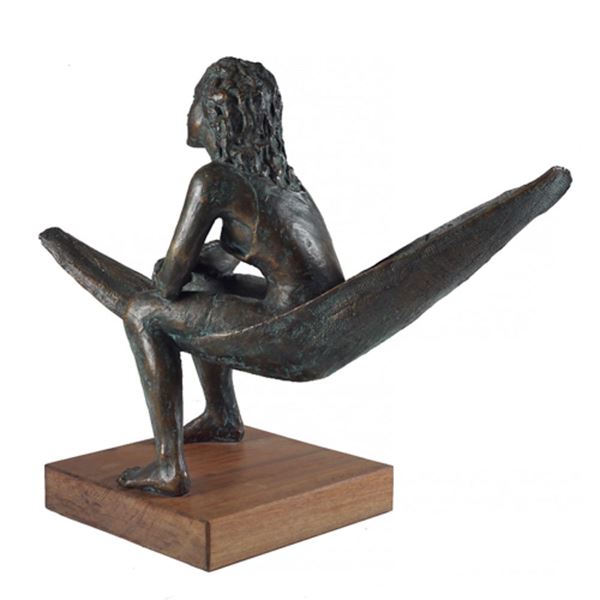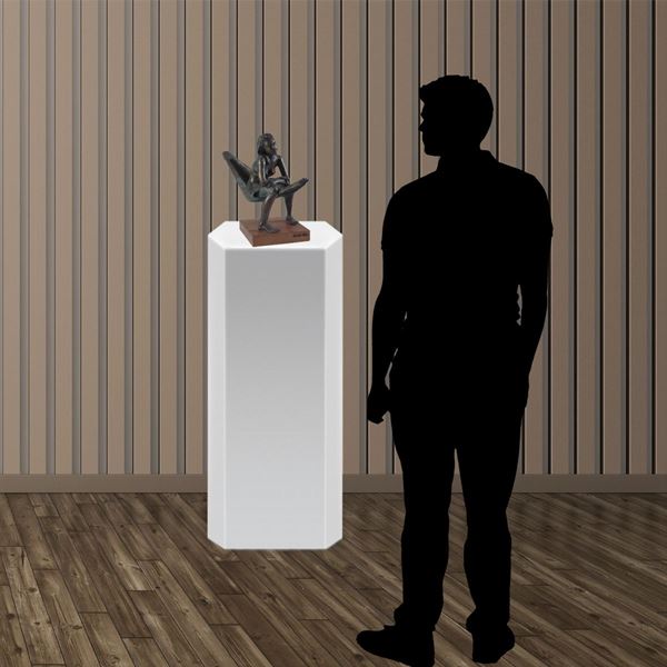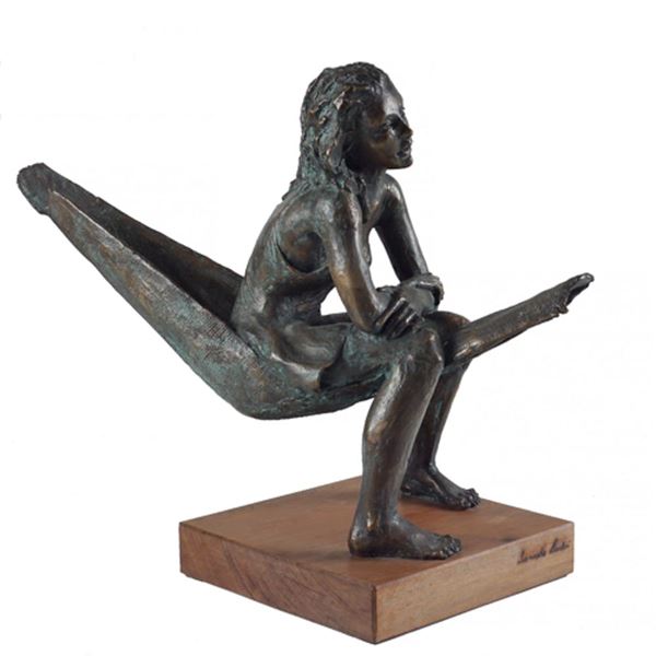 "Meditazione", scultura in bronzo, poggiante su base in legno, firmata alla base.