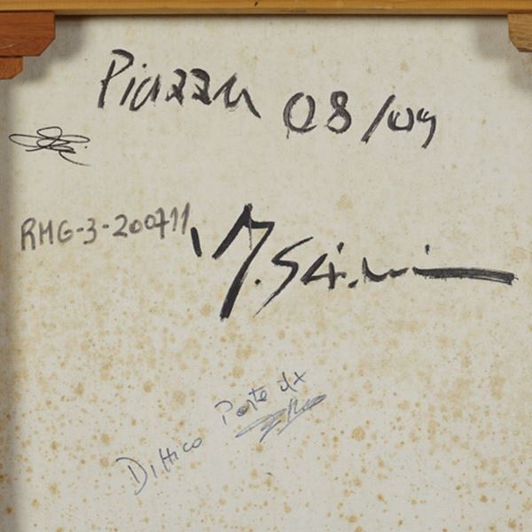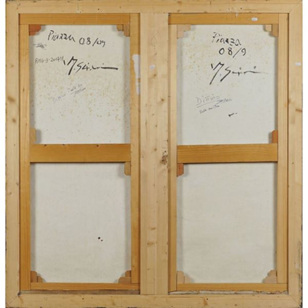 "Piazza", 2008-2009, dittico olio su tela, firmato, datato, titolato sul retro, entro cornice.