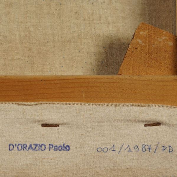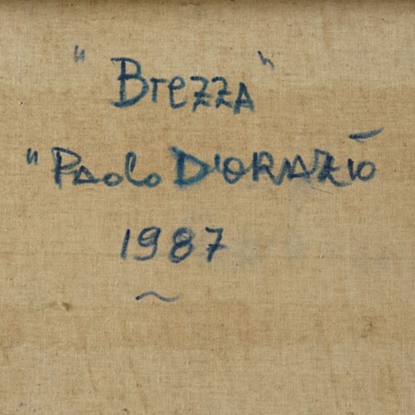"Brezza", 1987, tecnica mista su tela, firmato, datato e titolato sul retro, 35x100 cm.