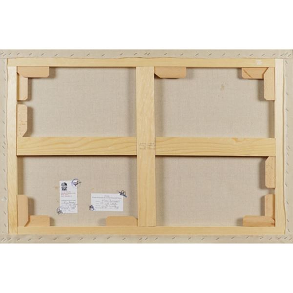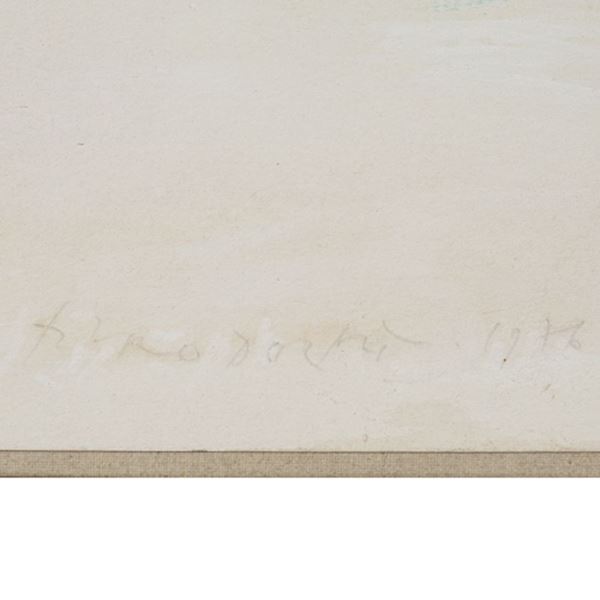 "Grisaille", 1976, tecnica mista su carta intelata, firmata e datata in basso a sinistra. Opera archiviata, 63,5x96 cm.