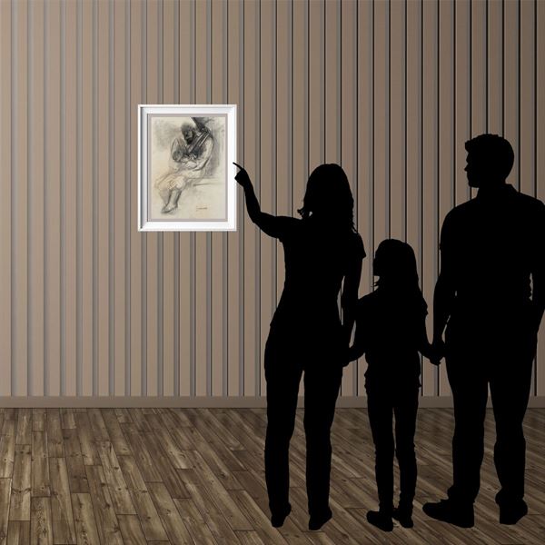 "Due figure", anni 60, china e matita grassa su carta, firmata in basso a destra, entro cornice. Collezione Dario Micacchi, 45x34 cm.