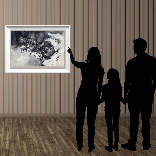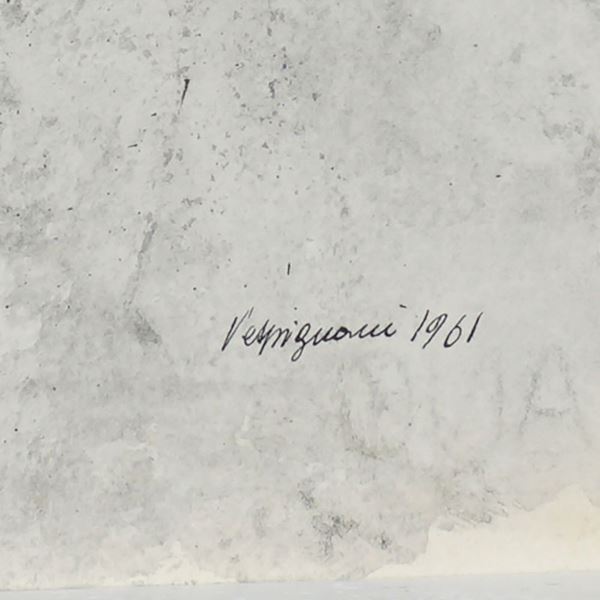 "Senza titolo", tecnica mista su carta, 1961, firmata in basso a destra, entro cornice. Collezione Dario Micacchi, 67x103 cm.