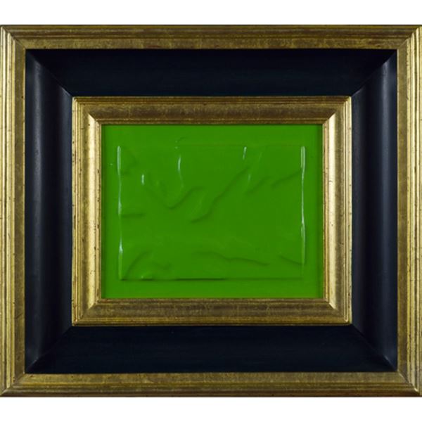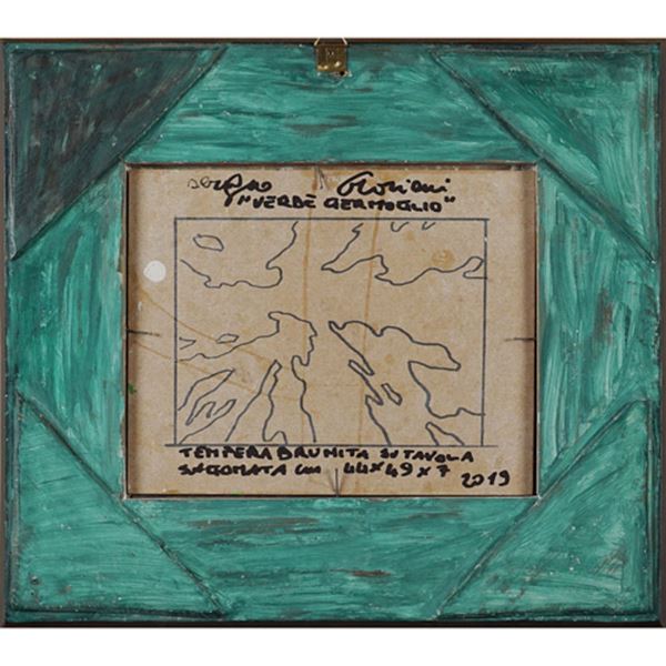 "Verde germoglio", 2019, tempera brunita su tavola sagomata, firmata, datata e titolata sul retro. Autentica dell'artista su fotografia, 44x49 cm.