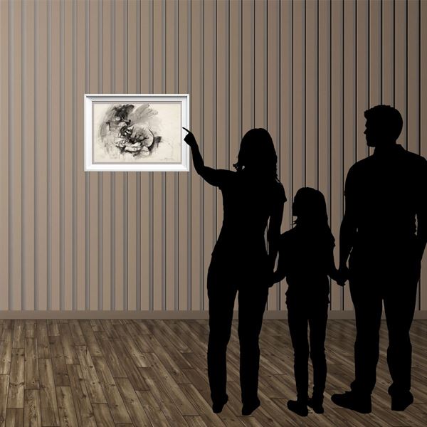 "Veglia il bambino malato", 1961, china e acquarello su carta, firmato, datato e titolato in basso a destra, entro cornice. Collezione Dario Micacchi, 50x35 cm.