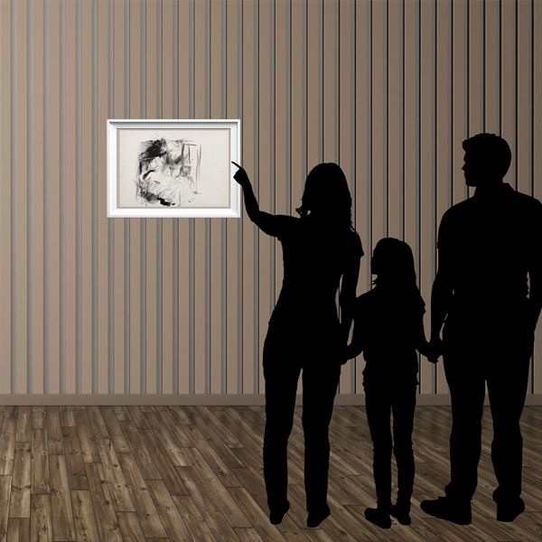 "Nudi sdraiati", china e acquarello su carta, anni 60, firma in basso a destra, entro cornice. Collezione Dario Micacchi, 50x35 cm.