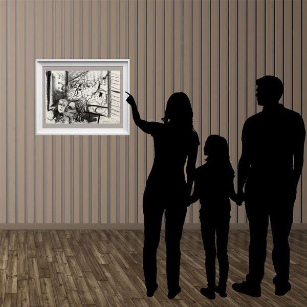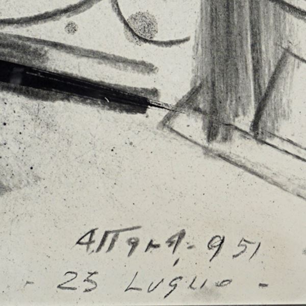 "25 luglio", 1951, china, carboncino e acquarello su carta, firmato e datato in basso a destra, entro cornice. Collezione Dario Micacchi, 50x70 cm.