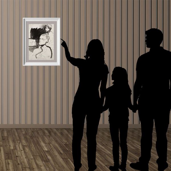 "Senza titolo", china e acquarello su carta, firmato in basso a destra, entro cornice. Collezione Dario Micacchi, 50x35 cm.