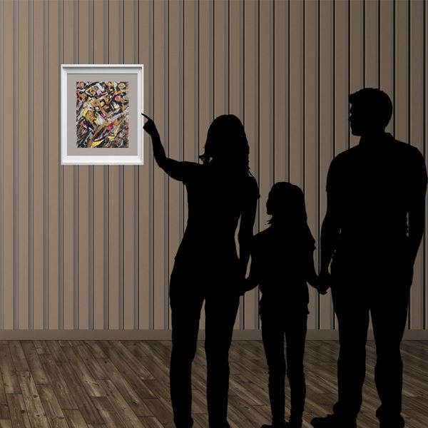 "Senza titolo", 1961, tecnica mista su carta, firmata e datata in basso a destra con dedica, entro cornice, 28x22 cm.