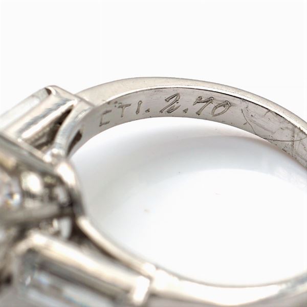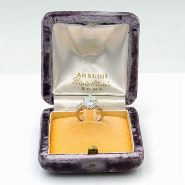colore G - purezza VVS1 - Type II A,  ai lati due diamanti taglio baguettes ct 0,60 circa colore F/G - purezza IF/VVS, misura 8