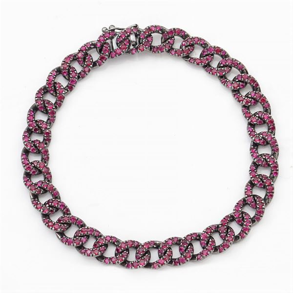 Bracciale in oro nero18kt a maglia groumette con rubini