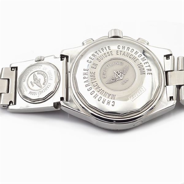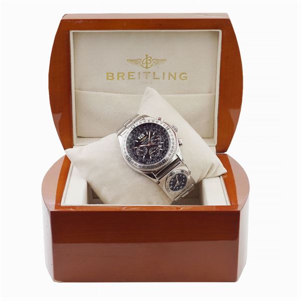 cronografo tricompax, in acciaio, cassa tonda 44 mm. ref. A42362 - 177660 quadrante nero con scala tachimetrica e telemetrica, lancette e indici e numeri luminescenti, tre quadranti ausiliari per il cronografo, datario ore 4.30, lunetta unidirezionale, vetro zaffiro, movimento meccanico a carica automatica, bracciale originale in acciaio completo di piccolo orologio supplementare indipendente con movimento al quarzo e indicazione dell'ora giornaliera, cassa quadrante e movimento firmati